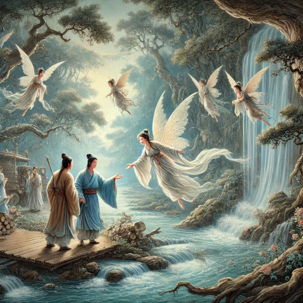 「劉阮不覺歸仙去」指的是劉晨與阮肇無意中進入了仙境,隨著環境的影響,他們迷失了現實,象徵著在生活或工作中,因為環境或他人的影響,無意中偏離了原本的路。「空度闊浮七世春」意味著在這樣的迷失中,時間流逝,終究一無所成,虛度光陰。