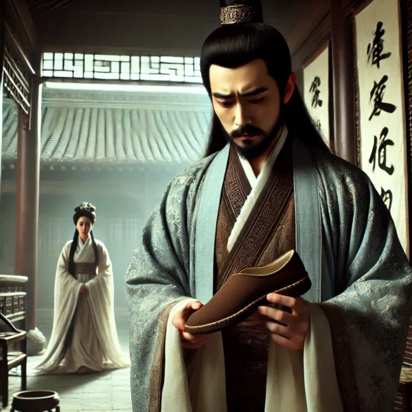 這首籤詩取材於《胭脂記》。宋朝的郭華,治陽人,赴汴京應試,因戀上胭脂鋪女王月英的美貌,落第不歸,羈留汴京。與之約期私會,但因郭華醉酒而未醒,王月英留下鞋子而回。郭華醒來見鞋悔恨,最終自盡而死。這個故事象徵因一時感情沖動而招致的後悔和悲劇。
