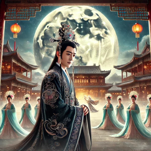 這首籤詩取材於唐朝的唐玄宗。唐玄宗與方士羅光遠在中秋夜一起遊覽月宮,見到宮中的仙女演唱霓裳羽衣曲,唐玄宗記住了曲譜,並傳授給了大真,這首曲子也因此成為名曲。